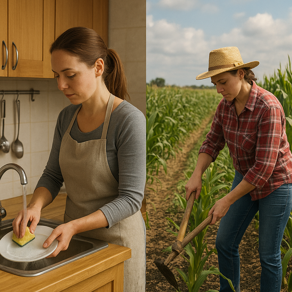 Na wsi Wielkanoc to także moment przełomu w pracach polowych. Po świątecznym obżarstwie panie ostrożnie uczestniczą w: